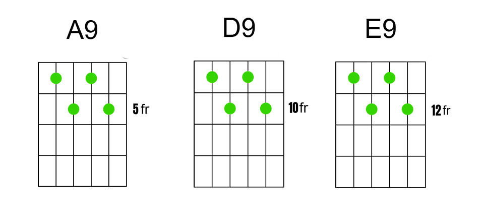 ✅ Rítmicas con acordes 9 (A9, D9, E9)
