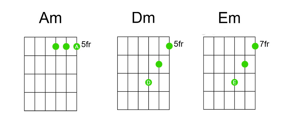 - Sobre Am, buscamos y tocamos la triada de Am.